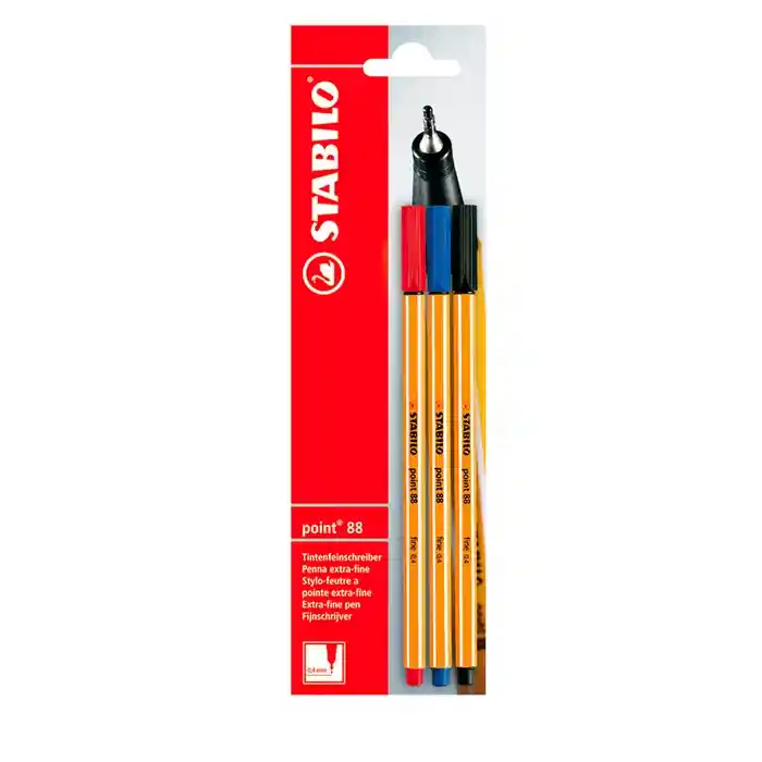 Marcador Stabilo #88 Pta Fina 0.4Mm 3Un
