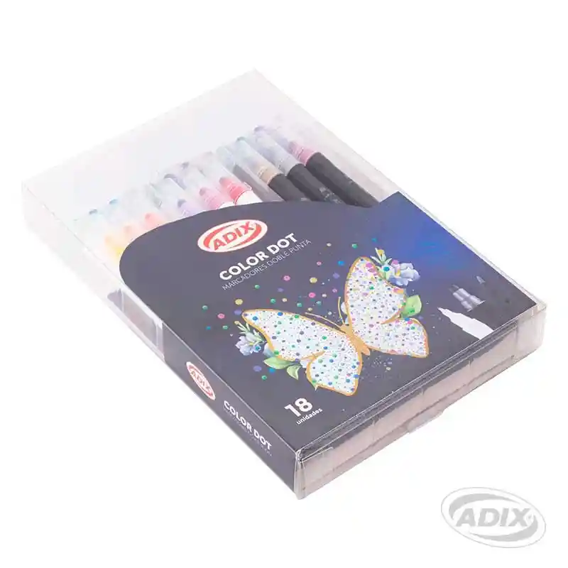 Set de marcadores ideales para puntillismo. Incluye 18 unidades más 5 hojas blancas y 5 negras. Punta redonda, fina y extra fina