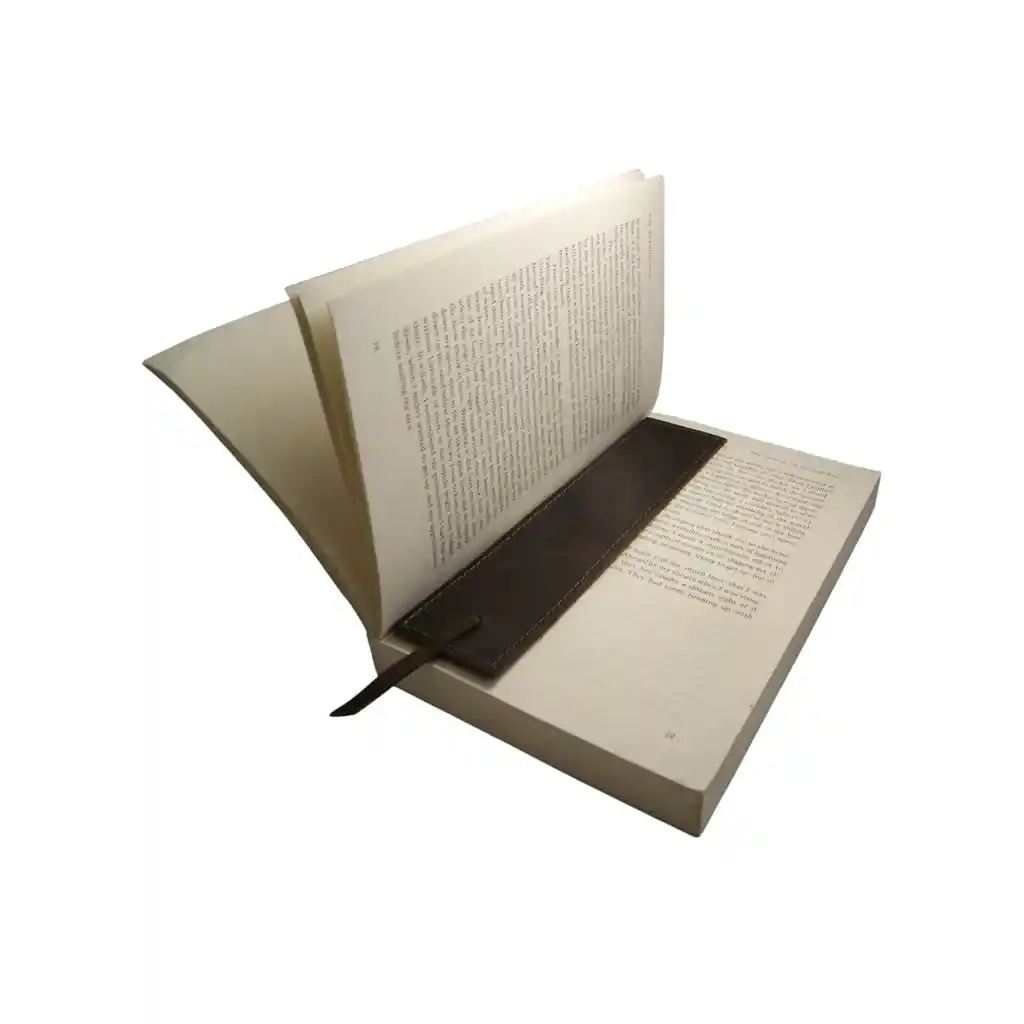 "Sumérgete en la lectura con nuestro encantador marcador de libros de cuero suave y duradero. Su diseño delgado y liviano se desliza sin dañar las páginas. Agrega estilo y elegancia a tus momentos de lectura, ¡mantén tus páginas favoritas siempre a la vista! Confección: Hecho en Chile Material: Cuero Color: Café y Negro Medidas: 4.5 x 19 cm"