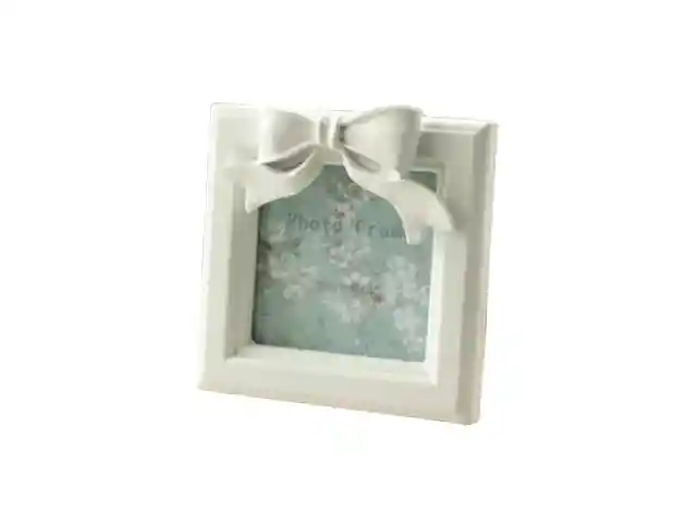 Clásico y femenino marco de fotos de color crema, con una bonita cinta en su parte superior. Ideal para poner el recuerdo de un momento o ser querido y exponerlo. Su tamaño de cuadrilátero es de 13 x 13 centímetros. Hace juego con toda la línea de portarretratos Jacinta.