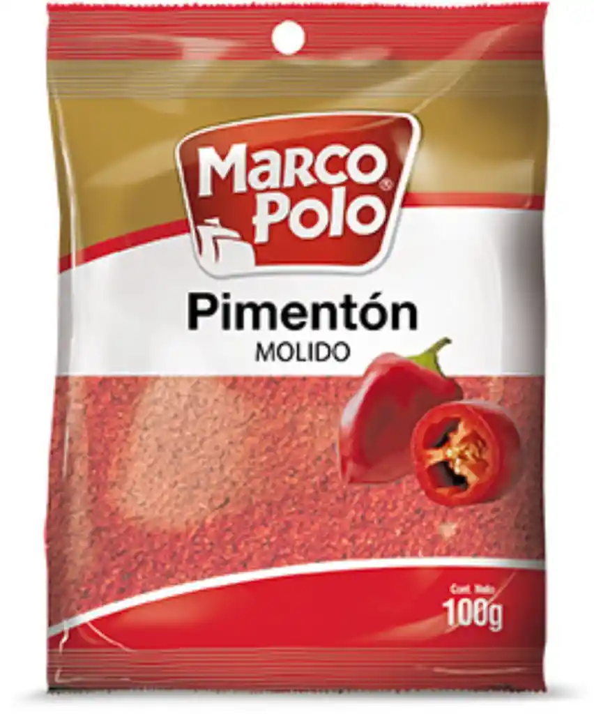 Marco Polo pimentón molido. Presentación: 1 bolsa por 100 gramos.