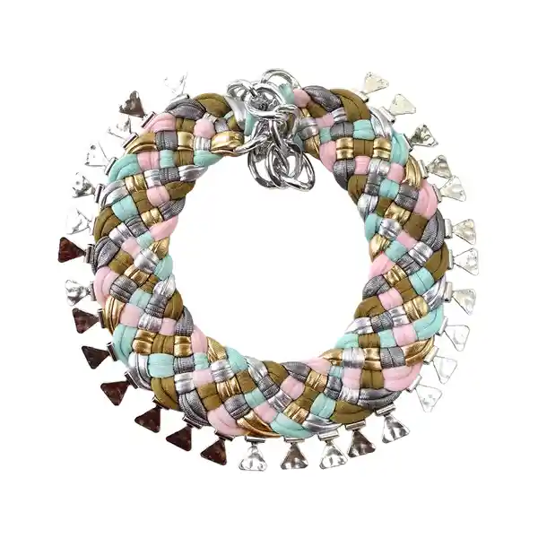 Collar Elasticado Color Rosado. Turquesa. Dorado. Plateado. Gris Metálico y Pistacho. Incluye Terminación Triangular Plateada. Tamaño 50 cm de Largo x 4.0 cm de Ancho. Cadena Plateada de Fantasía. Producto Lavable. Elastic Necklace. Colors Pink. Turquoise. Gold. Silver. Gray Metallic And Green Pistachio. Size 50 cm Length x 4.0 cm Width. Fantasy Silver Chain. Washable Product.
