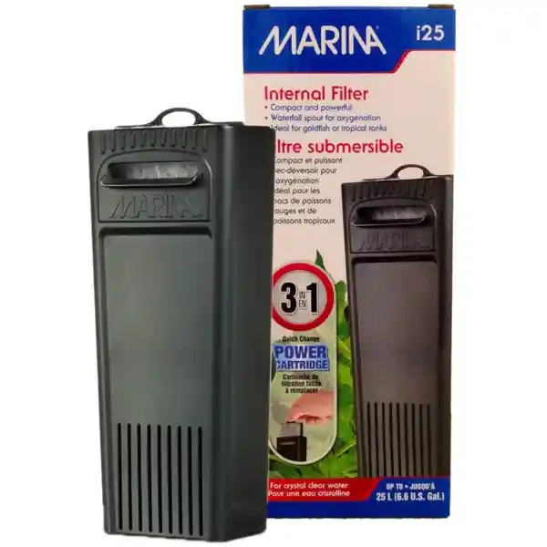 Los Filtros Internos Marina I25 y I110 Son Filtros Compactos Pero Muy Potentes. Son Perfectos Para Limpiar de la Mejor Manera Posible Los Acuarios Con Peces de Agua Fria o Con Peces Tropicales. Además Son Capaces de Mantener Limpios Acuarios de Hasta 110 Litros Respectivamente. Son Muy Faciles de Instalar y de Colocar en el Acuario Para Que Todo Empiece a Funcionar Correctamente. Las Características de Este Producto Son: 3 Etapas de Filtrado: Mecanica Quimica y Biológica. Sistema Integrado Bio-Screen Agua Completamente Libre de Componentes Perjudiciales Capacidad: 25L y 110L