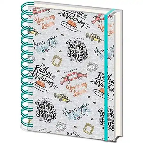 Una Auténtica Maravilla de Cuaderno o Libreta. Es de Tamaño Aproximadamente A5 (15 cm x 21 cm) de Tapa Dura y su Diseño Está Basado en Una de Las Series Más Emblemáticas de Los Años 90: Friends. Una Libreta Que Destaca Nada Más la Ves Por el Llamativo Diseño de su Portada en Gris Jaspeado y Con un Montón de Iconos de Friends Desde el Sofá Del Central Perk Hasta Frases Tan Famosas Como Ese How You Doin? Típico de Joey Pasando Por Ese Marco Amarillo Que Hay Detrás de la Puerta de la Casa Que Comparten Este Grupo de Amigos de Nueva York Que Casi Sentimos Como de Nuestra Familia. Una Libreta Que Queda Realmente Elegante Con Unos Detalles Muy Cuidados Que Puedes Llevar en Cualquier Lado y Con la Que Estarás Deseando Dibujar o Escribir Algo y Así Tener Una Excusa Para Mostrarla.