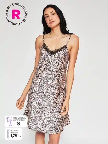 Marquis Camisa de Dormir Navi Satin Print fb Café XL V26