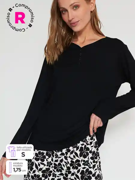 Marquis Top Manga Larga Rib Atp fb Negro L V26