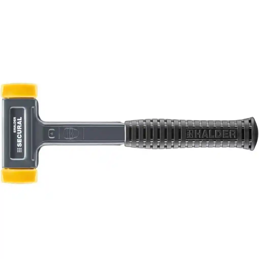 Martillo Secural Anti-rebote Rectangular Dureza media 30x40mm. Un verdadero especialista en esquinas y bordes gracias a sus inserciones rectangulares. Insertos de impacto reemplazables, rectangulares, de dureza media, hechos de poliuretano. Permite trabajar de forma silenciosa y completamente sin retroceso. Fuerza de impacto muy alta con poco peso. Conexion absolutamente irrompible entre la cabeza y el mango del martillogracias a la carcasa soldada longitudinalmente. Campos de aplicacion: Colocacion de parquet/laminado, construccion de ventanas y puertas, construccion de tabiques en seco, construccion de muebles, carpinteria, trabajo de chapa, colocacion y union de piezas, trabajos de reparacion
