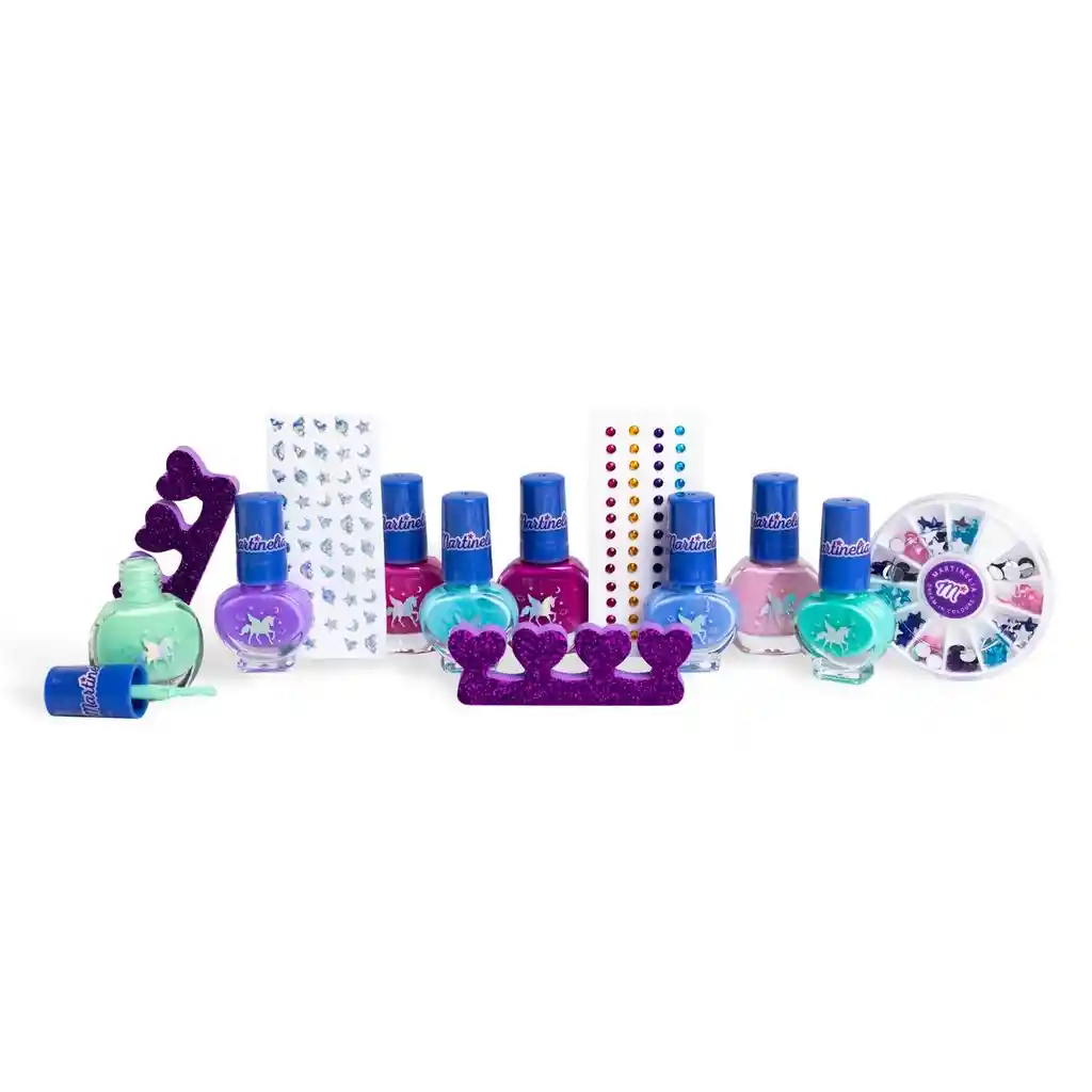 Juguete niño. Martinelia Galaxy Dreams Mega Nail Art Set – ¡Explora el Universo con Uñas Galácticas! El Martinelia Galaxy Dreams Mega Nail Art Set es un increíble kit de manicura inspirado en el mágico universo y las estrellas. Incluye esmaltes en tonos cósmicos, stickers, gemas y accesorios para crear uñas llenas de brillo y fantasía, perfectas para niñas soñadoras y creativas. Ideal para tardes de juego, fiestas de amigas o como regalo único, este set permite a las pequeñas diseñar uñas espectaculares que reflejan todo el encanto de la galaxia. Contenido del Set 8 Esmaltes de uñas en colores brillantes y metálicos. Gemas, stickers y decoraciones galácticas. Separador de dedos y herramientas de aplicación. Fórmulas suaves, no tóxicas y fáciles de limpiar. Recomendado para niños a partir de 5 años.