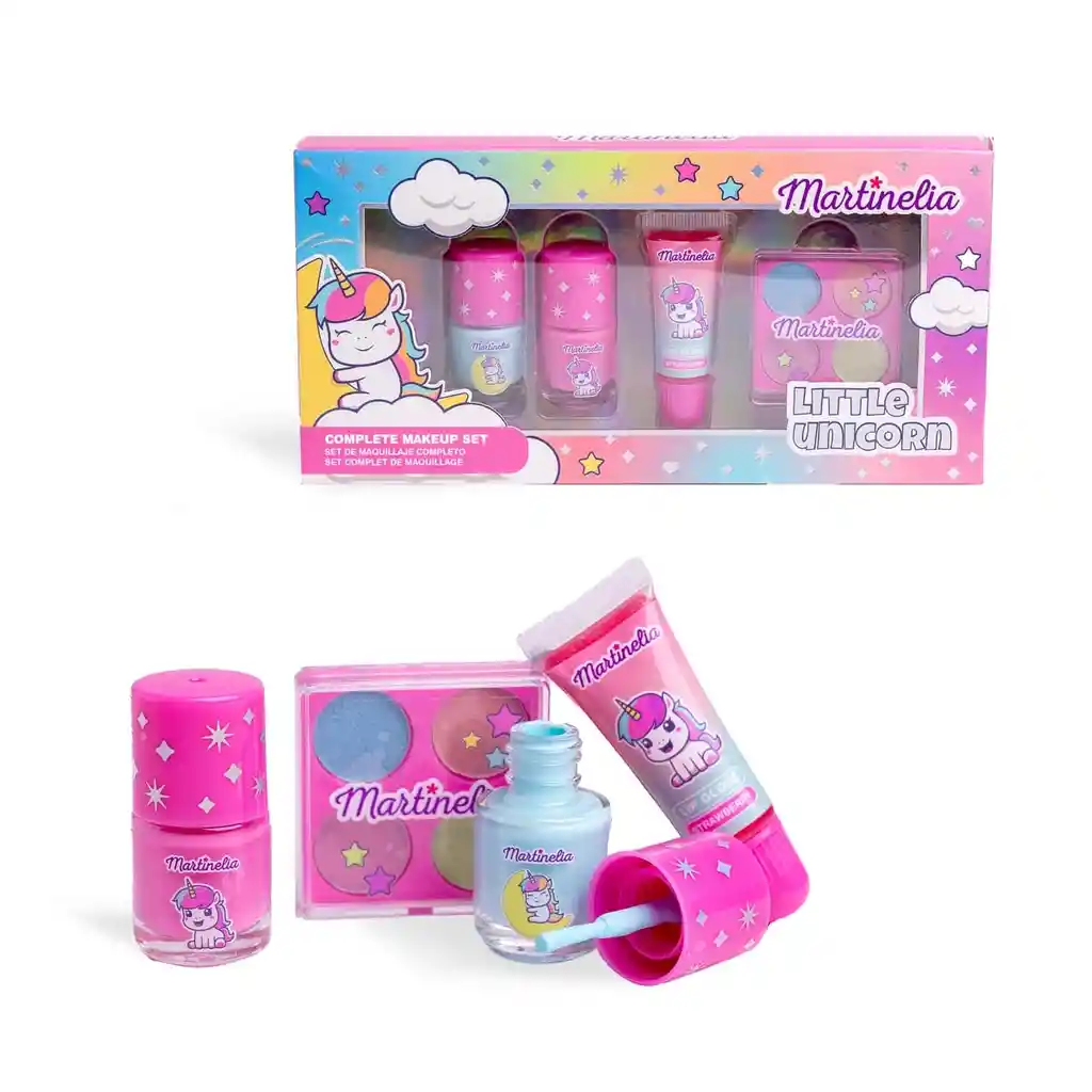 Little Unicorn Beauty Set – Martinelia ¡Descubre la belleza encantada! Este pack de maquillaje infantil incluye: ● 2 esmaltes de uñas ● 1 brillo labial ● 1 paleta de sombras de ojos con 4 colores Perfecto para pequeños soñadores, permite explorar creatividad y estilo personal con colores divertidos y deslumbrantes. Con el Little Unicorn: Enchanted Beauty Set, cada día es una oportunidad para brillar y jugar con magia. Edad recomendada: A partir de 6 años