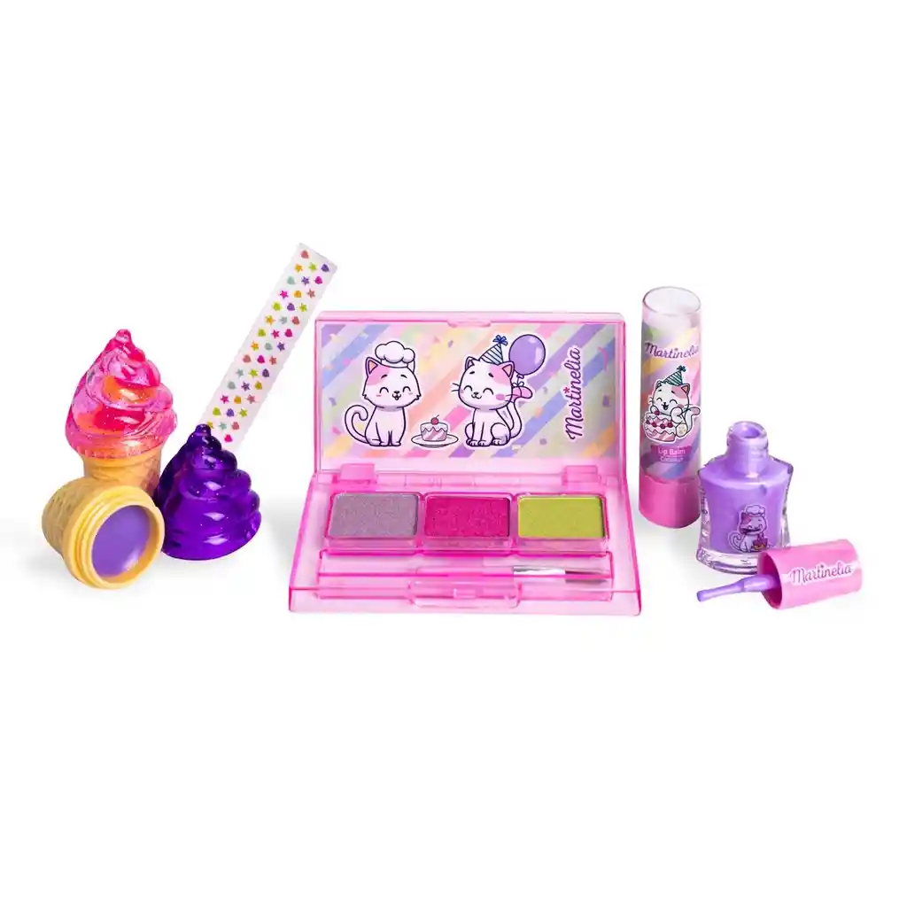 Juguete niño. MARTINELIA Yummy Lips & Eyes Kit – ¡Dulzura y Color para Jugar y Crear! El Yummy Lips & Eyes Kit de MARTINELIA es perfecto para que las niñas disfruten de una experiencia de maquillaje divertida, segura y súper colorida. Este set incluye brillos labiales y sombras para ojos, todos en tonos vibrantes y con aromas deliciosos que lo hacen aún más especial. Diseñado especialmente para el público infantil, este kit estimula la imaginación y el gusto por la belleza a través del juego simbólico. Ideal para momentos de juego libre, fiestas de maquillaje o como regalo adorable. Incluye: 1 Paleta de sombras de ojos 2 Brillos labiales. 1 Bálsamo de labios 1 Esmalte de uñas Stickers Maquillaje al agua, no tóxico y fácil de remover. Características y Funcionalidades: Ideal para juegos de belleza entre amigas. Estimula la coordinación mano-ojo y la motricidad fina. Promueve la autoexpresión y la creatividad. Recomendado para niñas a partir de 5 años.