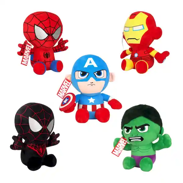 Con Marvel Cualquiera Puede Imaginar Grandes Aventuras Junto a Sus Super Héroes Favoritos Ayudándoles a Defender Los Derechos la Justicia y Proteger al Mundo de Aquellos Despiadados Villanos Que Intentan Destruirlos. Con Los Peluches de 30 cm Los Niños Podrán Imaginar Toda la Acción y Aventura Del Universo Marvel Recreando Sus Escenas Favoritas de Las Películas o Creando Sus Propias Historias. Estos Peluches Cuentan Con un Diseño Clásico Hechos Con Materiales Extra Suave Para Que te Acompañen Incluso a la Hora de Dormir. Coleccionalos Todos. Cada Uno se Vende Por Separado.