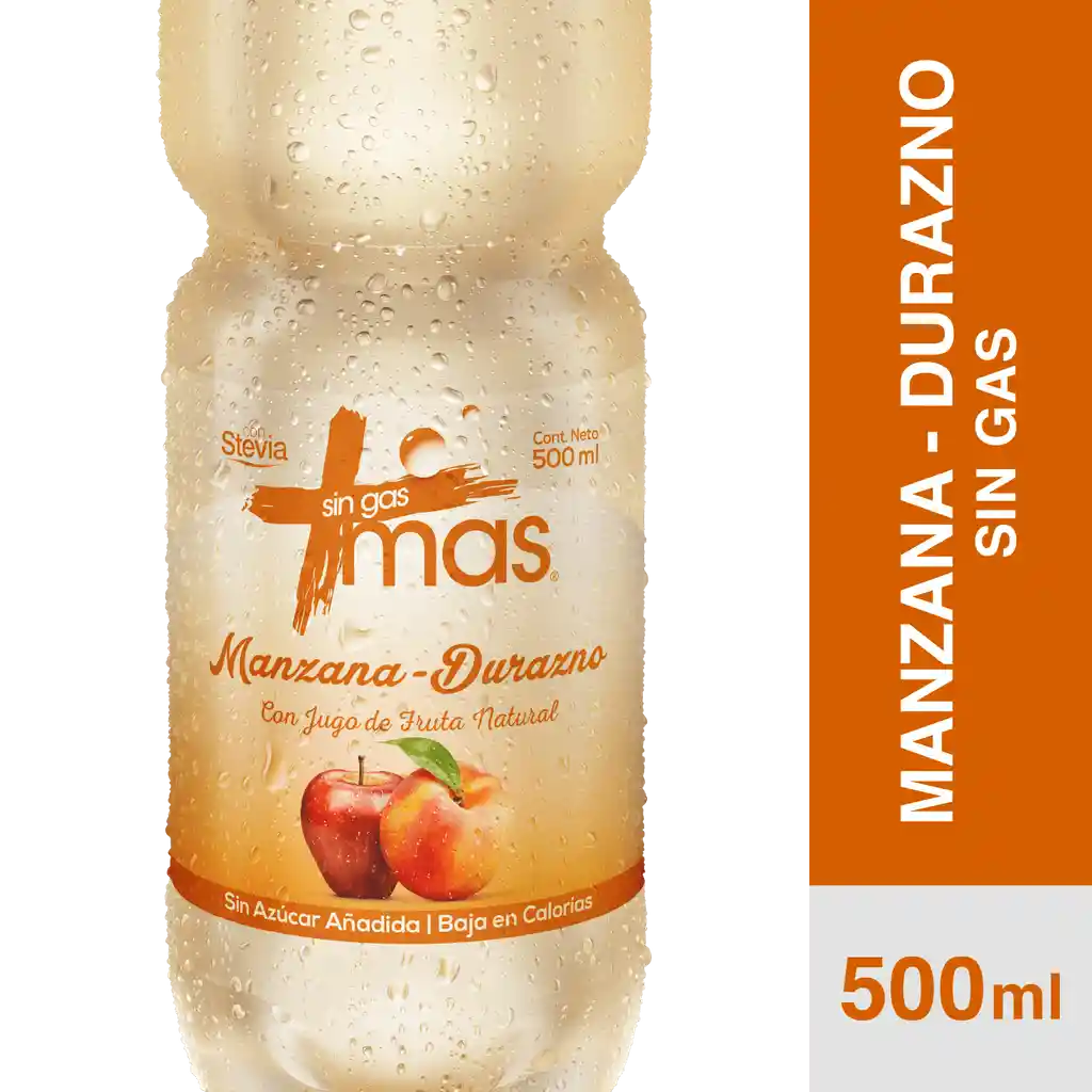 Agua saborizada a manzana durazno, con jugo de fruta natural, sin azúcar añadida, baja en calorías.