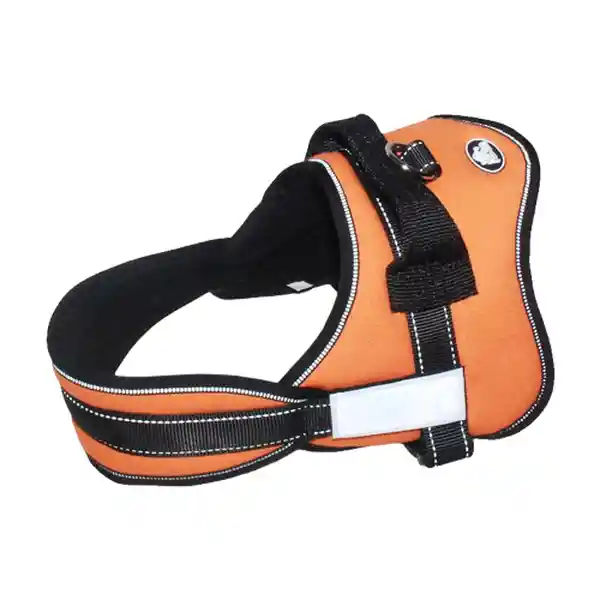 Arnés Macizo y Acolchado Para Perros Color Naranjo y Costuras Reflectantes Ideal Para Actividades al Aire Libre. Con Ajustes Para Calzarlo Perfecto a la Medida de tu Perro y Velcro Superior Para Evitar Enganches en Lugares Indeseados Durante el Pas
