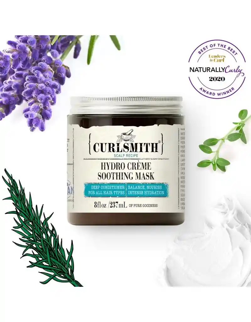 La máscara Hydro Creme de CurlSmith es un tratamiento hidratante profundo que humecta el cuero cabelludo y el cabello sin apelmazarlo. Máscara de hidratación profunda que se enfoca en las áreas más secas del cabello para volverlas a hidratar *Da gran deslizamiento al cabello y ayuda a desenredar *Hace que el cabello sea suave y sedoso. *Úsalo una vez a la semana para un cabello más sano, suave y brillante. *Textura espesa y mantecosa que se derrite en cada hebra de cabello sin apelmazarlo. *Adecuado para tipos de cabello fino o medio. *Ingredientes veganos, libres de crueldad, limpios y aptos para niños rizadas. *Diseñado para todos los tipos de rizos y texturas. Ingredientes principales *Manteca de karité para máxima hidratación *Ácido hialurónico, conocido como un ingrediente milagroso en el cuidado de la piel: solo un gramo puede contener hasta 6 litros de agua, lo que lo hace perfecto para proporcionar hidratación sin apelmazar el cabello. *Mezcla calmante de té verde, lavanda, tomillo, hamamelis, amla y madera de cedro
