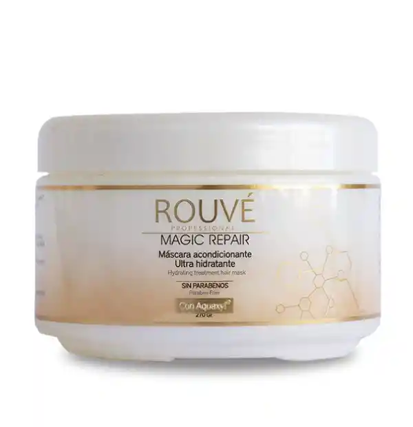 MAGIC REPAIR MASK es un tratamiento ultra hidratante intensivo con Aquaxyl® para cabellos secos y muy secos. Su textura enriquecida es compatible con todo tipo de cabellos y acondiciona intensamente hasta las puntas. Restaura la hidratación natural de tu cabello y logra un sensorial suave y manejable. Su ingrediente activo el Aquaxyl®: Activo Eco Certificado, ultra hidratante mezcla dos moléculas higroscópicas de origen natural. Actúa a nivel interior y superficial de la fibra. Los estudios han demostrado que Aquaxyl es capaz de armonizar la hidratación biológica natural del cabello y devolver la apariencia sana y vital. Este activo retiene y atrapa la humedad, manteniéndola en el núcleo de la fibra capilar. Además protege la integridad física del cabello. Modo de Uso: Después del shampoo, aplicar la máscara de medios a puntas, dar un masaje suave y dejar actuar de 5 a 10 minutos y luego enjuagar. Se recomienda utilizarla cada 2 lavados. Resultados: Hidratación desde la primera aplicación, Acondicionamiento incomparable, Brillo inmediato, Cabello mucho más suave y Cabello más resistente a los factores externos. Producto Vegano, no testeado en animales y sin parabenos. Producto Rouve.