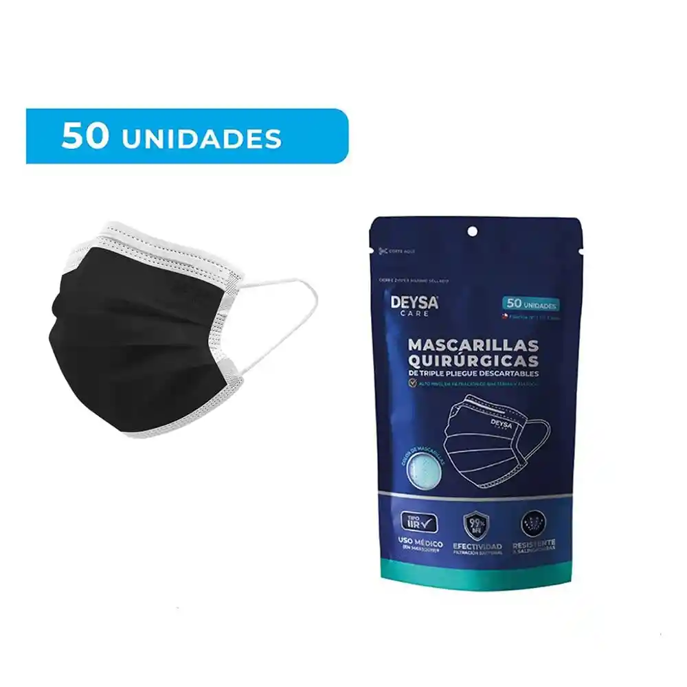 Mascarilla 3 Pliegues Negra Deysa 50 Unidades Ziploc