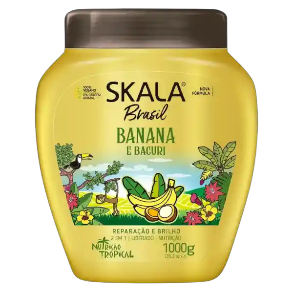 La Mascarilla Skala Banana 1000 ml es un tratamiento capilar intensivo que hidrata, nutre y revitaliza el cabello seco o dañado, dejándolo suave, brillante y manejable. Su fórmula enriquecida con banana (plátano), manteca de karité y D-Pantenol fortalece la fibra capilar, aporta elasticidad y protege el cabello de daños futuros, dejando un acabado sedoso y saludable.