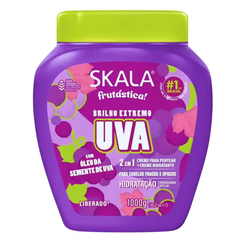 La Mascarilla Skala Uva 1000 gr es un tratamiento capilar intensivo que hidrata, nutre y protege el cabello seco o dañado, aportando suavidad, brillo y vitalidad. Su fórmula enriquecida con extracto de uva, manteca de karité y D-Pantenol fortalece la fibra capilar, controla el frizz y deja el cabello más manejable y saludable, con un aroma frutal agradable y refrescante.