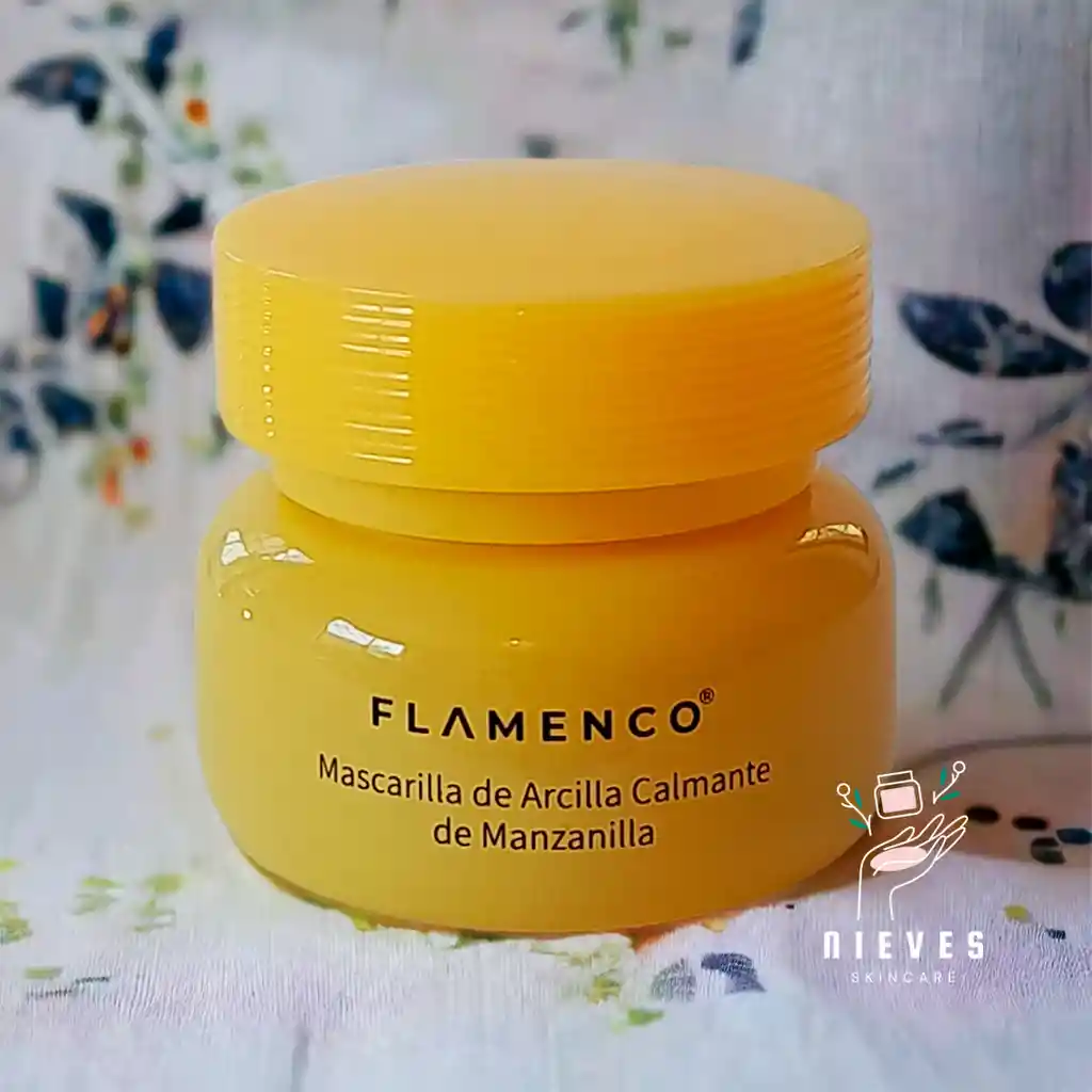 Mascarillas Faciales de Arcilla Manzanilla Flamenco ® Manzanilla: con efecto calmante rica en vitaminas, repara y purifica. Equilibra los aceites de la piel, calma el acné y el enrojecimiento, mejora la opacidad hidratando y refrescando.