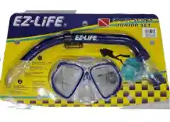 MASC+SNORK EZ JUNIOR SET 6335J_x000D_ / Set para snorkeling juvenil_x000D_ / Mascara y Snorkel_x000D_ / Marca EZ-LiFE_x000D_ / Modelo Junior 6335J_x000D_ / Mascara incluida nariz_x000D_ / – Cuerpo de silicona transparente_x000D_ / – Marco de PVC azul y transparente_x000D_ / – Cristales templados, (superando norma USA Z86. 11-1985)_x000D_ / – Tirantes ajustables_x000D_ / - Vision extra dimensionada (5x7 cms cada ojo aprox)_x000D_ / Snorkel_x000D_ / – Boquilla de silicona trasparente_x000D_ / – Purgador de plastico transparente_x000D_ / – Tubo de plastico azul con Dry Top, minimiza salpicaduras de agua_x000D_ / – DRY Top plastico transparente_x000D_ / – Largo aprox 34 cms_x000D_ / Precaucion_x000D_ / – Mantener alejado del sol o calor_x000D_ / Despues del uso_x000D_ / – enjuagar con agua dulce, nunca detergentes o solventes_x000D_ / – Almacenar en lugar ventilado y fresco_x000D_ / Presentacion en blister preformado