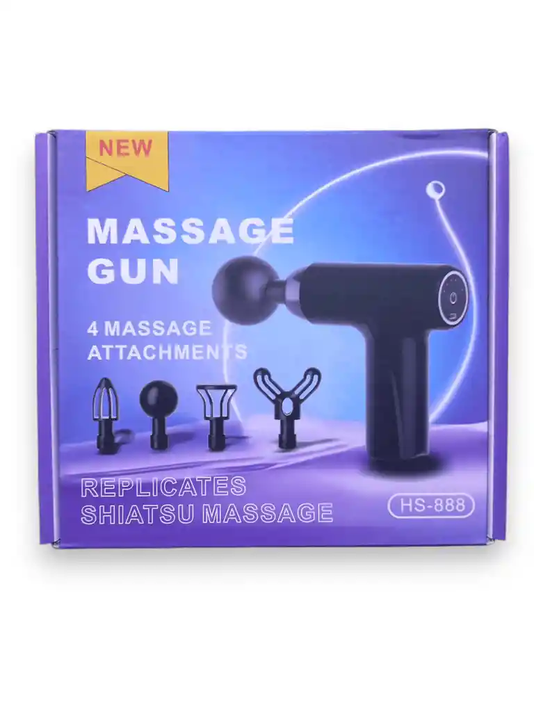 Pistola de masaje con 4 accesorios intercambiables que replica el masaje shiatsu, perfecta para relajar músculos, aliviar dolores y reducir la rigidez diaria.