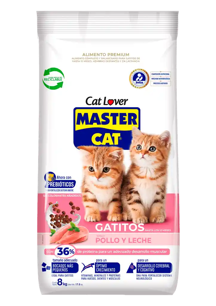Esta etapa es la más importante en la vida de tu gato: está explorando su entorno, desarrollando su cuerpo, agudizando sus sentidos y aprendiendo a jugar. Tendrá un mayor gasto de energía y requerirá de cuidados especiales. Master Cat Gatitos tiene la receta perfecta para la primera etapa de su vida, le aportará todo lo que necesita para que crezca sano, fuerte y protegido.