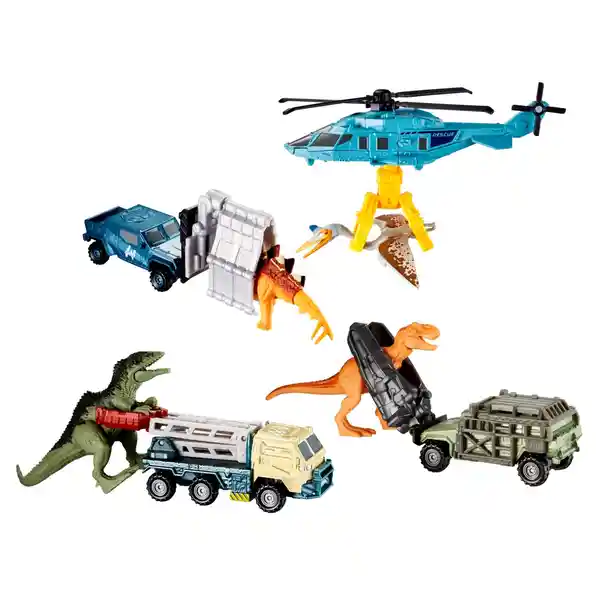Disponible Varios Modelos. Prepárate Para la Emoción de la Aventura y la Acción Con Jurassic World. Revive Los Momentos Más Cautivadores de Las Películas y Las Escenas Más Emocionantes Con Los Vehículos Transportadores de Matchbox. Cada Vehículo Incluye un Mecanismo Para Transportar Las Figuras de Acción de Dinosaurios a Escala. Estos Transportadores Son Idénticos a Los de Las Películas de Jurassic World y Cuentan Con Detalles Originales y Decoraciones Que Estimularán la Imaginación de Los Niños Mientras Recrean Sus Momentos Cinematográficos Favoritos o Inventan Sus Propias Aventuras. Los Ocho Transportadores Diferentes Incluye un Submarino Con un Mosasurio un Helicóptero Con un Triceratops Así Como Otros Vehículos Que Vienen Con Blue un Tiranosaurio Rex y un Dilofosaurus. Las Figuras Vienen a Escala Con Los Vehículos Matchbox Para Tener Más Posibilidades de Recrear Las Aventuras de Jurassic World.