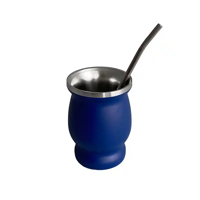 Es Práctico y anti deslizante. Mantiene el calor gracias a su estructura insulada. Incluye bombilla metálica. Gran capacidad. Es fácil de lavar. Ideal para el Mate frio o caliente. Es muy cómodo para cebar. Fabricado en acero inoxidable. Especificaciones: Material acero inoxidable. Capacidad 240 ml. Alto 11 cm. Diámetro boca 8 cm. Largo bombilla 15 cm.