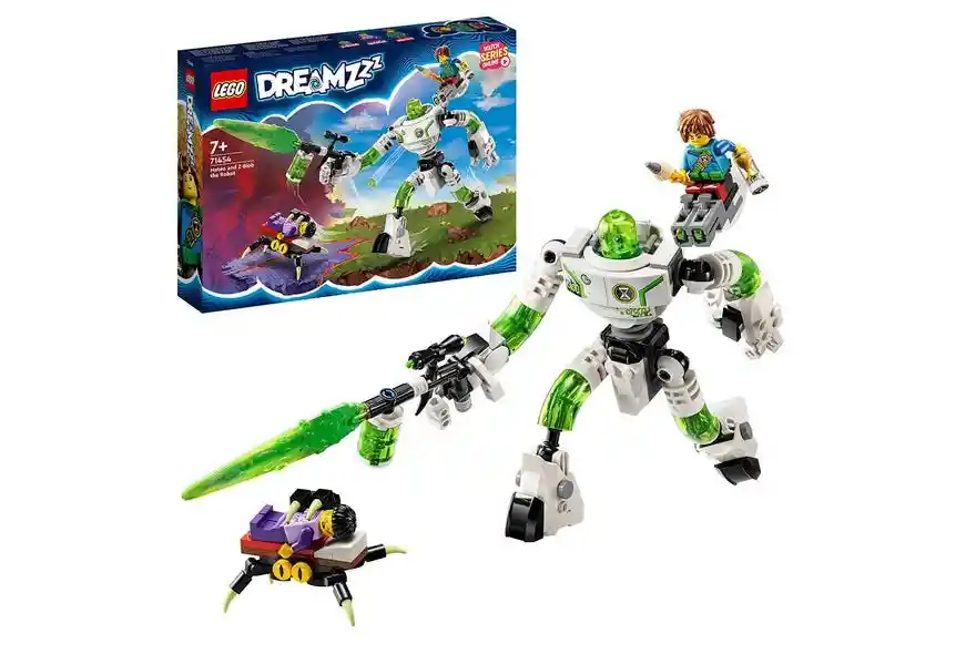 Ábrele la puerta del fascinante Mundo Sueños a tu peque de 7 años o más con el set de juguetes de construcción LEGO® DREAMZzz™ Mateo y Z-Blob Robot (71454). Basado en la emocionante serie para televisión DREAMZzz, este set permite a los niños transformar a Z-Blob en un robot avanzado para ayudar a Mateo a rescatar a Jayden, raptado por un Monstruo de las Pesadillas. 1 set, 2 formas de construir El gran Z-Blob Robot cuenta con torso, brazos y piernas articulados. Los peques pueden usar los accesorios incluidos para equipar a Z-Blob con blásteres en la mano y el hombro o con una mochila propulsora y un casco. Esto les brindará la oportunidad de dar rienda suelta a su imaginación y, además, se divertirán jugando por partida doble. Minifiguras para dar vida a la acción El set incluye detalladas minifiguras de Mateo y Jayden. Vienen con accesorios importantes para sus personajes en la serie para televisión, como un cinturón, un Bastón-Lápiz y un Reloj de Arena. • Da vida a Z-Blob: Los niños se lo pasarán genial jugando y usando su imaginación con el set de juguetes de construcción LEGO® DREAMZzz™ Mateo y Z-Blob Robot (71454), basado en una historia de la serie para televisión. • Juego articulado: El gran Z-Blob Robot cuenta con torso, brazos y piernas totalmente articulados. Esto permite a los niños colocarlo en distintas posturas con facilidad para recrear diferentes escenas. • Escoge una aventura: Los peques pueden elegir entre equipar a Z-Blob con un bláster de mano, un bláster montado en el hombro y una diana para hacer prácticas de tiro, o con una mochila propulsora y un casco. • 2 minifiguras: Este set de juguetes incluye detalladas minifiguras de Mateo y Jayden, acompañadas de importantes accesorios, como un Bastón-Lápiz y un Reloj de Arena. • Detallados elementos: Un Monstruo de las Pesadillas y la cama en la que dormía Jayden cuando lo raptaron. • Juego independiente o en grupo: El set, diseñado para niños y niñas a partir de 7 años, les permitirá divertirse durante horas jugando a solas o con amigos. • Dimensiones: Z-Blob Robot mide aproximadamente 16 cm de altura.