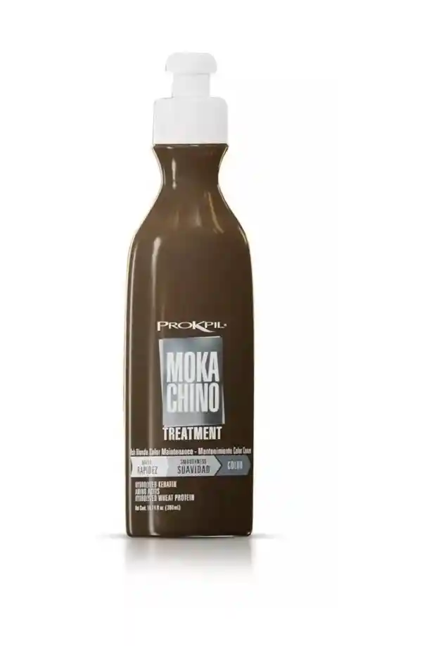 Tratamiento Mantenimiento Color Mokachino Ideal para cuidar y mantener las tonalidades chocolate MOKACHINO en alturas intermedias. Perfecto para neutralizar naranjas, rojizos y lograr chocolates firmes y mate. Mantiene el color del cabello teñido, evitando que aparezcan los tonos de desgaste, que se generan por los lavados o exposición al ambiente, al mismo tiempo que mejora la hidratación, el brillo y la suavidad del cabello. Esta línea está compuesta por 9 colores, creados como una solución a los diferentes tonos de tinturas. Aplica para Fondos de Aclaración: 4, 5 y 6 Este producto no es permanente Adecuado para cabellos teñidos Libre de parabenos No testeados en animales Modo de uso: Lava el cabello con Shampoo Color Care o Shampoo Milkeratin 1, retira con abundante agua, eliminar el exceso de agua con la toalla, aplica el tratamiento ideal en un mechón primero para que tome el tiempo del color que quiere y luego en el resto del cabello Tiempo de Exposición: Para tonos Rubios: Esperar de 2 a 10 minutos. (A mayor altura menos tiempo y a menor altura más tiempo) Para otros Tonos: Esperar de 10 a 15 minutos. Retirar con abundante agua. Repetir cada 3 lavados (si lava el cabello 3 veces a la semana solo debe aplicar 1 vez a la semana el producto) Producto prokpil