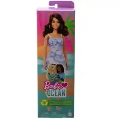 Fabricada con plásticos reciclados*, la colección Barbie® Loves the Ocean continúa con un toque de estilos frescos de verano. Con telas y accesorios hechos con materiales reciclados, las últimas muñecas de esta línea usan vestidos de verano con temática tropical que inspiran todo tipo de diversión bajo el sol. ¡Las muñecas Barbie® también están hechas de plásticos que se encuentran en el océano*. Las muñecas no pueden tenerse en pie solas. *Partes de plástico hechas con un 90 % de plástico proveniente de un radio de 50 km de vías fluviales en áreas que carecen de sistemas formales de recolección de residuos. Cabeza de muñeca excluida. Se recomienda de 3 años en adelante.