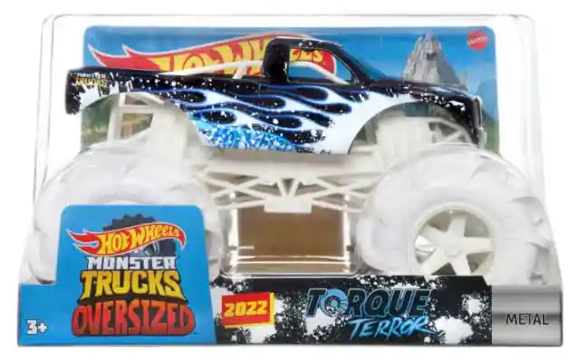 Los Monster Trucks de Hot Wheels® die-cast a escala 1:24 son los mejores vehículos jamás construidos para competir y dominar. Estos extravagantes vehículos están listos para pelear mano a mano en las batallas con un enorme tamaño y ruedas GIGANTES. Cada camioneta de juguete incluye divertidas estadísticas de cada Monster Truck en el interior, incluidos el nombre, el tipo de camión, la fuerza, el ataque de choque único y la “motorvación” para disfrutar con diferentes narrativas. Torque terror , es un gran regalo para niños y fans de los Monster Trucks de 3 años en adelante.