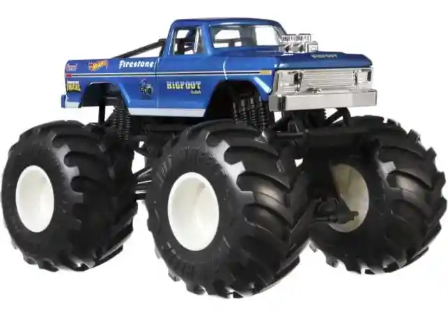 Los todoterrenos metálicos Monster Truck de Hot Wheels® a escala 1:24 son los más robustos y consiguen dominar cualquier competición. Son perfectos para enfrentarse en combates de uno contra uno gracias a su enorme cuerpo y sus ruedas GIGANTESCAS. Cada caja presenta información de cada vehículo, como su nombre, tipo de todoterreno, fuerza, ataque único y motor para divertirse contando grandes historias. Con sus grandes carrocerías y sus enormes ruedas, Bigfoot es perfecto para correr por terrenos difíciles. Se recomienda de 3 años en adelante.