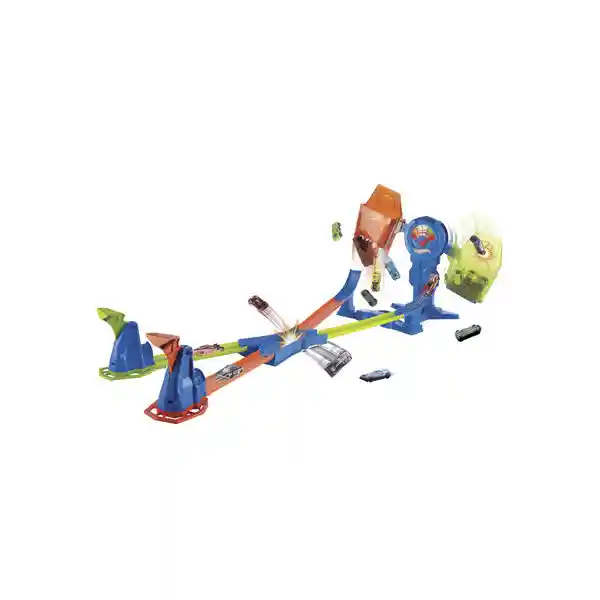 Un increíble set de pista Hot Wheels que reta a los niños a lanzar sus autos a su cubeta primero ¡Y a salpicar los autos de sus amigos para ganar! Se puede jugar con 2 jugadores para fomentar el compañerismo ¡El set tiene 2 lanzadores, 2 cubetas y zona de choques! ¡Choca o golpea a los oponentes en la zona de cruce! Carga los autos en el lanzador, apunta a la cubeta probando y experimentando con sus movimientos. ¡Los jugadores necesitan seguir cargando autos en la cubeta para llevar la báscula a su favor! ¡El primero que tenga 2 autos más dentro de ella gana! La parte inferior de la cubeta perdedora se abre y libera los autos para un impresionante final. La acción dinámica de balanceo pone a prueba las habilidades. Excelente para jugar con un amigo o en la modalidad de uno solo.
