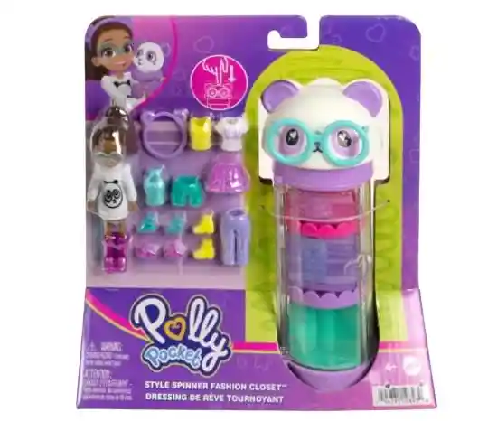 Este juego de juego Polly Pocket Style Spinner Fashion Closet tubo obtiene imaginación que gira con mucha inspiración y look, además de un lindo tema de panda. El juego viene completo con una muñeca Shani de 7.6 cm. que lleva un vestido y zapatos más un adicional 6 ropa, 3 pares de zapatos y banda de panda para combinar con el tubo. Los niños presionan la parte superior para usar la función de gabinete giratorio y revelan nuevas combinaciones de ropa para usar en la muñeca: ¡hay tantas posibilidades! El adorable juego de tubos de moda es perfecto para jugar sobre la marcha con un diseño ultra compactable. Es un regalo perfecto para niños a partir de 4 años, especialmente para aquellos que aman las mascotas y la moda.
