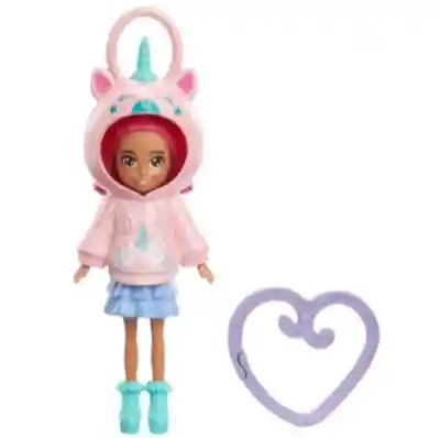 Las niñas encontrarán que es muy fácil traer a la muñeca Polly Pocket™ y a sus amigas gracias a los broches a presión que pueden ajustarse a mochilas, cinturones y más. Cada una de estas muñecas de 8 cm tiene una parte superior con un gancho que se puede deslizar sobre el broche en forma de corazón incluido para llevarlas a donde sea que vayas. El atuendo removible incluye una sudadera con capucha con temática de animalito, una colorida prenda de abajo y zapatos que combinan. Las niñas pueden coleccionarlos todos para mezclar, combinar y personalizar una colección. Se venden por separado. Se recomienda de 4 años en adelante.