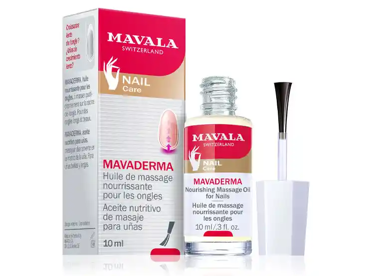 Principalmente la sangre nutre las raíces y ayuda a su crecimiento. La mala circulación sanguínea, enfermedades o incluso el llevar un anillo muy apretado puede hacer que la uña crezca lentamente. MAVADERMA es un aceite nutritivo que penetra las capas de la piel, y al mismo tiempo nutre la matriz de la uña, activando la circulación de la sangre en las raíces y promoviendo que crezcan sanas. Ingredientes clave: • Aceite de germen: nutre y hace más fuerte. • Aceite de oliva: reestructurante, rico en vitaminas. • Aceite de almendra dulce: emoliente, regenerante, remineralizante. INFORMACIÓN ADICIONAL Precaución: nunca aplicar MAVADERMA antes del esmalte, ya que este producto deja una capa de aceite en las uñas, puede hacer que la adherencia de las uñas y la base disminuya. RECOMENDACIONES DE USO Aplicar cada día sobre la piel por debajo de donde crece la uña. Masajear con movimientos circulares utilizando el pulgar para acelerar la penetración. Dejar hasta su completa absorción.