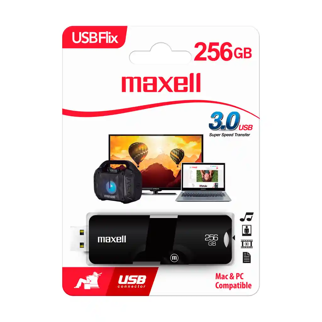 Ideal Para Trasladar Información de un Computador a Otro Respaldar Fotos y Documentos Importantes Así Como También Llevar Contigo tu Música Películas Trabajos Escolares Juegos y Programas. Con Nuestro Pendrive de 256Gb Maxell Usb 3.0 Tendrás Una Unidad.