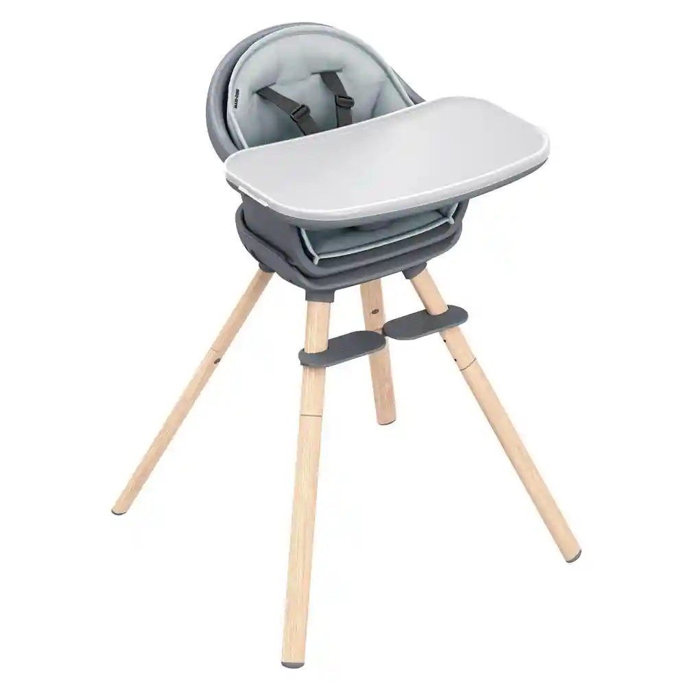 Moa es Una Silla de Comer 8 en 1, es Decir la Vas a Utilizar Desde Los 6 Meses a Los 5 Años.Te va a Encantar en Todas Sus Configuraciones: Como Silla de Comer, Como Silla Tradicional y Hasta Como Pequeño Escritorio. Tiene Una Bandeja Ajustable Sin Ranuras (Para Que no se Introduzcan en Ellas Restos de Comida), Extraíble Con Una Mano y Apta Para Lavavajillas. También Pensando en la Máxima Higiene su Asiento va Forrado Con un Tejido Repelente al Agua Que es Además Lavable a Máquina. Puedes Ajustar su Reposapiés Hasta a 3 Niveles Altura. Y si te Gusta la Decoración de Estilo Escandinavo Moa Tiene Sus Patas de Madera Emulando Este Estilo.Moa es Una Silla de Comer 8 en 1.Desde Los 6 Meses a Los 5 Años.Tiene Una Bandeja Ajustable Sin Juntas (Para Que no se Introduzcan en Ellas Restos de Comida) y Además es Extraíble Con Una Mano y Apta Para Lavavajillas.Su Asiento va Forrado Con un Tejido Repelente al Agua Que es Además Lavable a Máquina.Reposapiés Ajustable Hasta 3 Niveles Altura.Estilo Escandinavo (Patas de Madera Emulando)