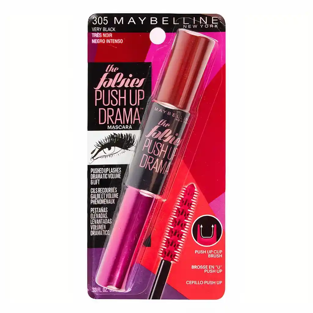 The Falsies® Push-Up Drama™ Waterproof Mascara de Maybelline levantan y voluminizan tus pestañas dramáticamente con su efecto Push Up. Esta máscara trae un cepillo con cerdas en forma de copa que levantan las pestañas al máximo. La fórmula cremosa da volumen y mantiene las pestañas en su lugar. ¡Pestañas más largas para una mirada dramática!