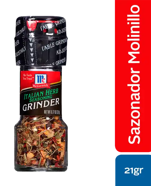 Una sabrosa mezcla de romero, perejil y granos de pimienta negra, con trozos de ajo, cebolla y tomate. Este molinillo agrega fácilmente un sabor italiano a pasta, salsas y carnes.