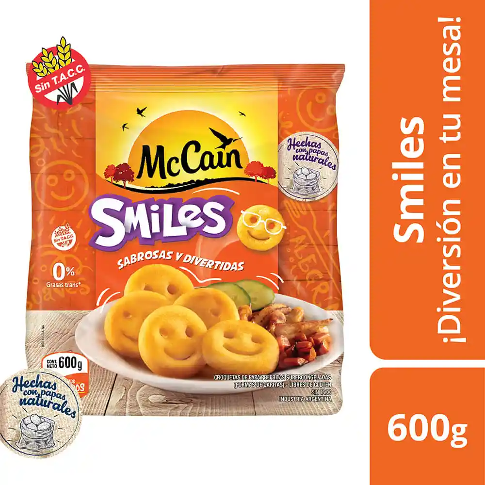 Sabrosas caritas de pura papa especialmente seleccionada para hacer de sus comidas un momento de diversión para los más chicos y una receta práctica para usted. Quedan bárbaras al horno, rinden muchos más platos y en pocos minutos las tendrá listas. Presentación en bolsa con 600 gramos.