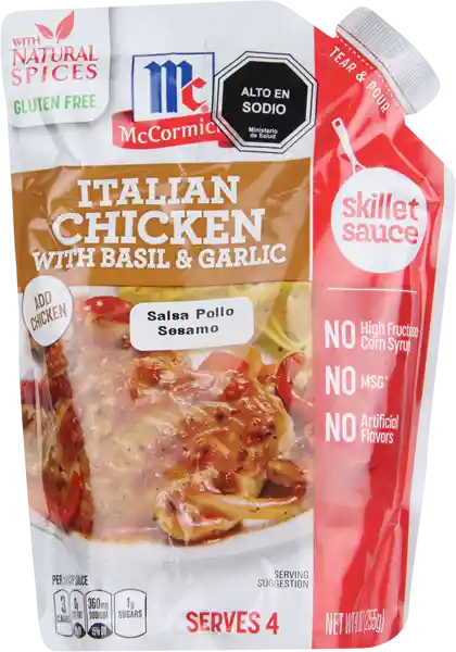 Salsa McCormick Pollo Italiano albahaca y Ajo 255 g