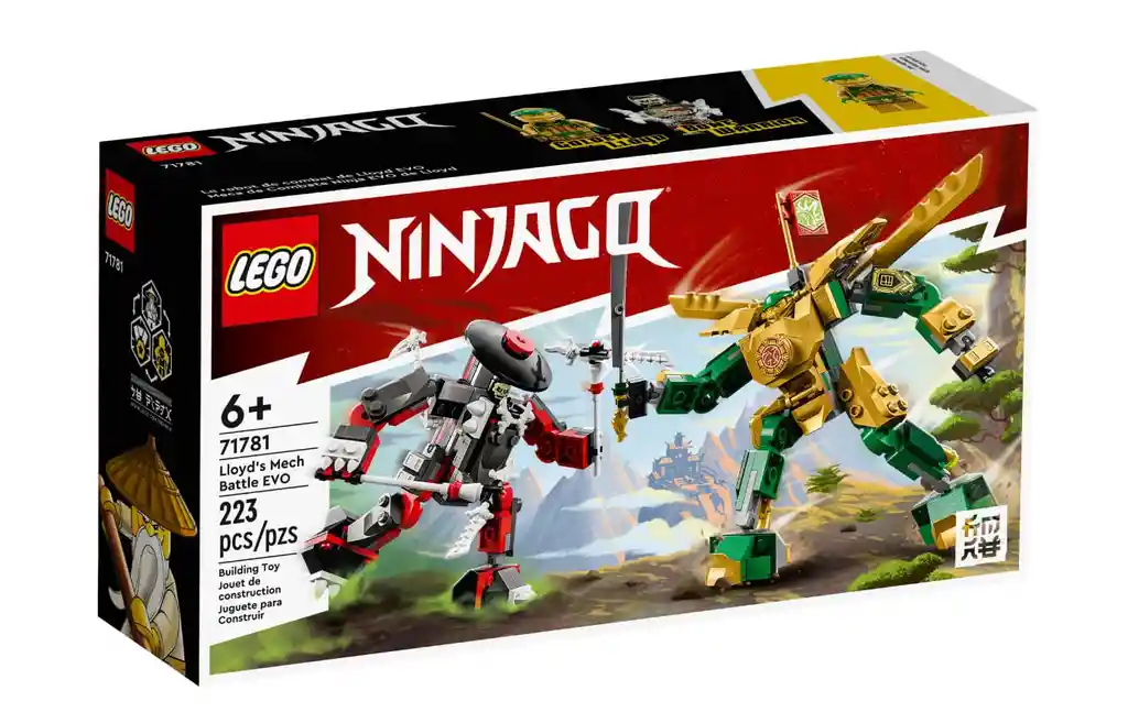 Los niños a partir de 6 años se convertirán en auténticos expertos en el mundo de acción y fantasía de LEGO® NINJAGO® construyendo el Meca de Combate Ninja EVO de Lloyd (71781) y jugando con él. El set incluye 2 mecas articulados con armas geniales para interpretar emocionantes batallas. Además, los peques podrán transformar el meca de Lloyd en una versión evolucionada con armadura dorada y alas para ayudarle a triunfar. Los mejores juguetes infantiles, ¡con una recompensa extra! Este set LEGO NINJAGO contiene 2 minifiguras: Lloyd Dorado y su enemigo el Guerrero Huesos, que librarán épicos combates a bordo de las cabinas de sus mecas. Como recompensa por superar el desafío, los niños obtienen una bandera de resiliencia coleccionable. Divertida experiencia digital para fans de LEGO Déjate llevar por la app LEGO Builder y vive con tu peque una intuitiva aventura de construcción en la que podréis controlar vuestro avance en el proceso, acercar y girar modelos en 3D y guardar sets. • Juguete de combate ninja: Los niños a partir de 6 años disfrutarán jugando con imaginación y librando un sinfín de batallas ninja con el set LEGO® NINJAGO® Meca de Combate Ninja EVO de Lloyd (71781). • 2 minifiguras: Este set NINJAGO® incluye 2 minifiguras. Los peques podrán representar trepidantes duelos entre Lloyd Dorado, con una espada dorada, y el Guerrero Huesos, armado con 2 shurikens. • Refuerza el meca: Reviste el meca de Lloyd con una armadura dorada y dótalo de alas para ayudarlo avencer al meca del guerrero huesos, equipado con una gran arma y un sombrero que se puede usar de escudo. • Bandera coleccionable: Por superar el desafío y ganar la batalla, los niños obtienen como recompensa una bandera de resiliencia para lucirla en el meca de Lloyd Dorado colocada en el asta. • Más acción ninja: Descubre los sets Dragón de Tierra EVO de Cole (71782), Moto-Meca EVO de Kai (71783), Jet del Rayo EVO de Jay (71784) y otros modelos de la gama LEGO® NINJAGO®. • Construye y juega: Este set de 223 piezas permitirá a los niños a partir de 6 años pasarlo genial construyendo e interpretando aventuras en la ciudad de NINJAGO®. Es perfecto como regalo de cumpleaños o como detalle sorpresa. • Para exponer y jugar: Mide aproximadamente 18 cm de altura. Los niños pueden exponer este meca de juguete en su habitación después de cada vertiginosa sesión de juego. • Una nueva manera de construir: La app LEGO® Builder guiará a los peques en la intuitiva aventura de construcción. Podrán controlar su avance en el proceso, guardar sets, y acercar y girar modelos en 3D a medida que construyen. • Calidad garantizada: Desde hace más de 6 décadas, los ladrillos LEGO® se fabrican con la garantía de que van a conectarse con facilidad una y otra vez. • Siempre estarás en buenas manos: Los ladrillos para construir LEGO® satisfacen estrictos estándares mundiales de seguridad.
