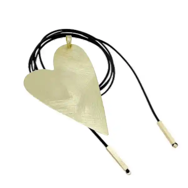 Medallón de corazón dorado de 26 mm con broche y acabado satinado + Cuero de gamuza color negro de 157 cm. *¡Incluye caja de regalo!