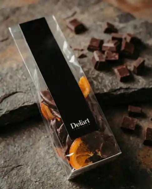 ¿Eres amante de las naranjas bañadas en chocolate? Suaves gajos de naranja caramelizados y bañados en chocolate Bitter, ¡No encontrarás unas naranjitas como estas! Date un gustito y deléitate con esta exquisitez… 110 G aprox.