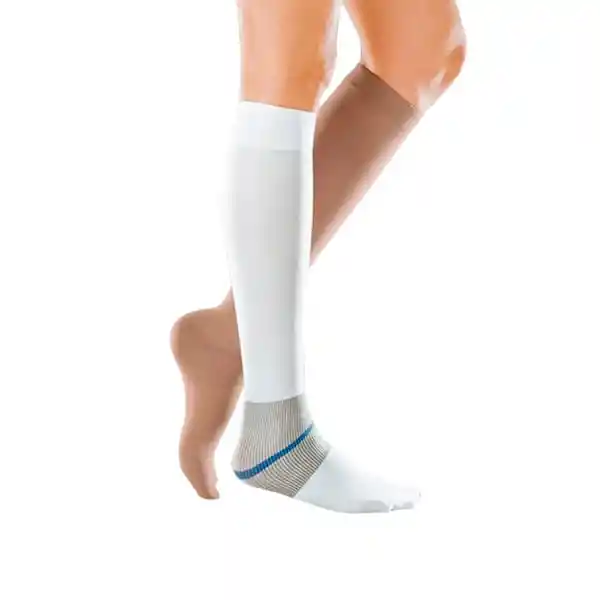 <h2>Media Ulcer Kit Compresiva Doble Capa 40 Mmhg</h2>Sistema compuesto por un kit de vendaje que proporciona 40 mmhg a nivel del tobillo. El sistema de tratamiento mediven ulcer kit se compone de 2 calcetines de compresión (mediven ulcer - Blanco y mediven ulcer plus - Beige). Los dos calcetines se han concebido de tal modo que mediven ulcer mantenga una compresión (20mmhg) durante el día y la noche, mientras que mediven ulcer plus refuerce y ofrezca compresión (20mmhg) durante las fases de movilidad a lo largo del día. <br /><br />Utilizando ambas medias durante el día se garantiza una compresión de 40mmhg supramaleolar. El kit también incluye aplicador de poliéster para asegurar fácil colocación.<br /><br />La particularidad de Mediven Ulcer Kit, radica en que los hilos del tejido mediven ulcer están impregnados de una solución de plata, esta constituye un tratamiento eficaz para heridas ya que a concentraciones muy pequeñas tiene un efecto prolongado contra un amplio espectro de bacterias e impide la aparición de olores.<br /><br />Características:<br /><br />Open Toe: Mediven ulcer ofrece una ventana de inspección ofreciendo seguridad al paciente, ya que se puede evaluar la circulación en todo momento.<br /><br />Softband: la banda superior de ambos calcetines ofrece un soporte firme que no genera constricción.<br /><br />Clima Confort: el tejido de ambos calcetines, ofrece un confiable balance de humedad, lo que evita prurito, y mayor comodidad y tolerancia al uso.<br /><br />Indicado para:<br /><br />- Terapia de úlceras venosas (clasificación CEAP C6)<br />- Terapia de úlceras mixtas (arteriales y vasculares) (siempre teniendo en cuenta las contraindicaciones) <br />- Prevención de recidiva de úlceras venosas (clasificación CEAP C5)<br /><br />Materialidad:<br /><br />71% Poliamida<br />28% Elastano<br />1% Plata
