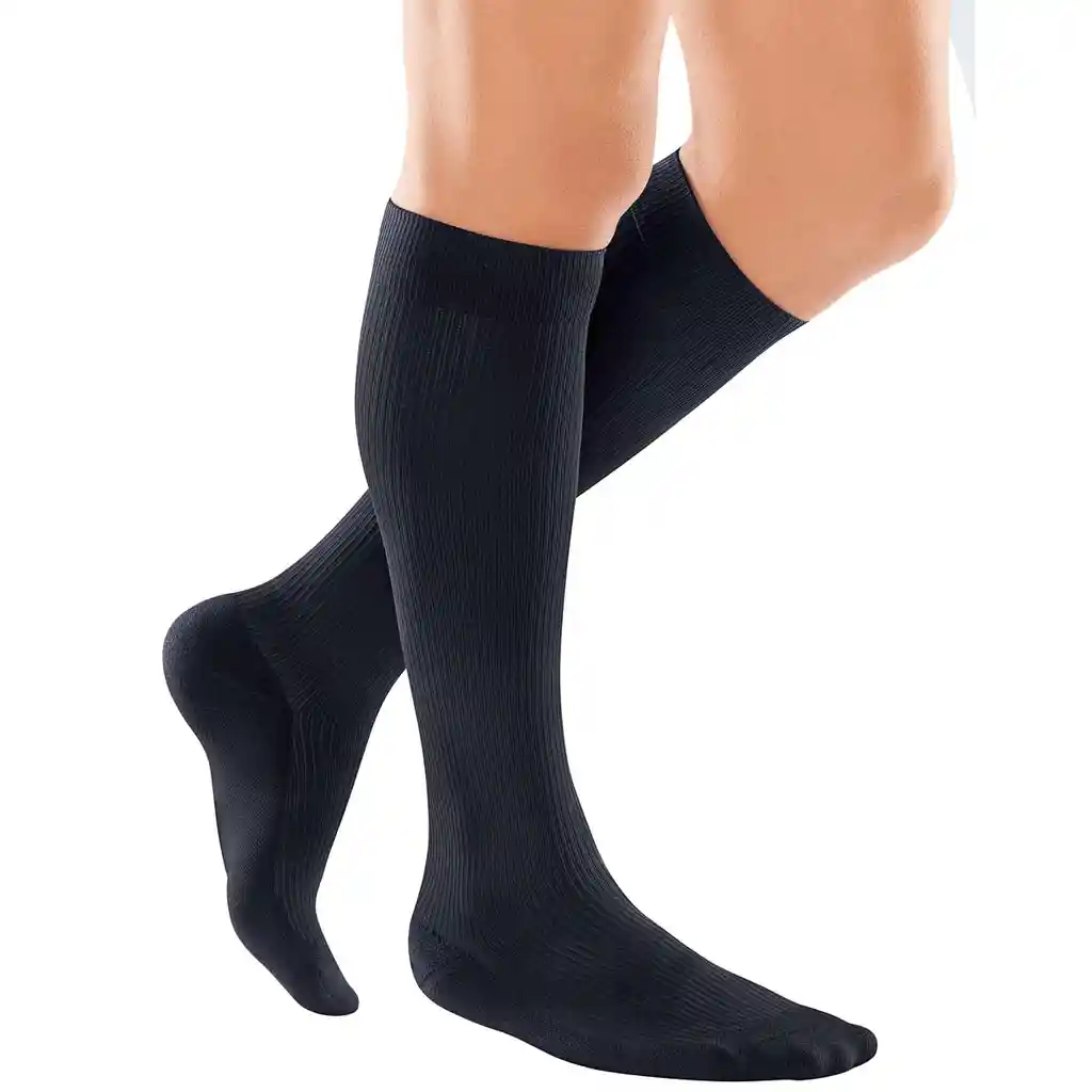 Las válvulas venosas no cierran perfectamente y la circulación sanguínea se enlentece. Las piernas se sienten pesadas y cansadas - en el peor caso, se puede desarrollar trombosis de viajero. <br />Los calcetines medi travel han sido especialmente desarrollados para mantener las venas en buen estado durante largos periodos de permanecer sentado o de pie. Ellos ayudan la circulación de sangre, de tal<br />manera que la sangre fluye al corazón en contra de la gravedad en vez de estancarse en las piernas.<br /><br />Las prendas de compresión durante un viaje pueden reducir el riesgo de trombosis de viajero*<br />*Hsieh / Lee (2005): Graduated compression stockings as prophylaxis for flight-related venous thrombosis: sistematic literature review, in: J Adv Ners. 51, p.83-98<br /><br />Material antiestática con suela reforzada para un excelente confort.<br />La forma acanalada hace parecer a medi travel igual a un calcetín regular de hombre.<br /><br />A la piel se siente cómoda todo el año ya que cuenta con sistema Clima Confort.<br />Con materiales elásticos y respirables para un calce perfecto, asegura un confort placentero.<br /><br />COMPOSICIÓN:<br /><br />90% Poliamida<br />10% elastano<br />Sin látex<br /><br />TALLAS Y MEDIDAS:<br /><br />Para determinar la talla adecuada, se debe medir el contorno del tobillo.<br /><br />Talla Small S: 18 a 20 cms.<br />Talla Medium M: 20 a 23 cms.<br />Talla Large L: 20 a 23 cms.<br />Talla Extra Large: 26 a 29 cms.<br /><br />CERTIFICACIÓN Y REGISTROS:<br /><br />Certificación de Norma ISO-9001-2008 Sección 8.2.3 NUMERO CL13-20100668<br />Registro del Instituto Nacional de Salud Pública NUMERO EDM 198-14<br />ISO-13485