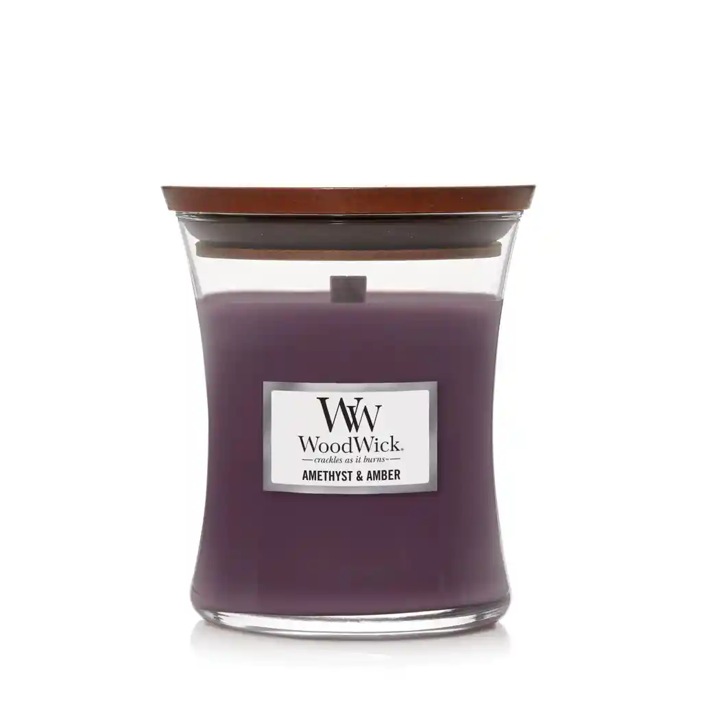 Vela Hourglass Mediana Amethyst & Amber Amethyst & Amber: Esta es una fragancia ambarina. Una mezcla compleja de aromas de lavanda y nardo combinados con facetas de ámbar y madera de gaiac. Las velas WoodWick® con silueta de reloj de arena mediano llenan su hogar con el suave crujido y los aromas acogedores y una mecha de madera natural que se agrieta mientras arde ™. El crepitar relajante de una vela WoodWick® es creado por una tecnología patentada PLUSWICK®, diseñada para garantizar una experiencia de crepitación segura y consistente para una fragancia más rápida y un mejor quemado mientras perfuma su hogar con el sonido relajante de un fuego crepitante. Peso: 645g