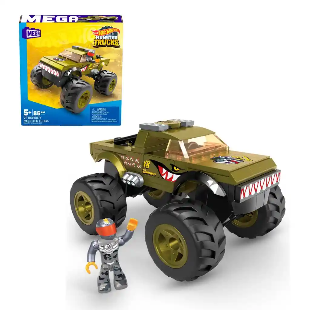 Prepárate para una acción monstruosa con el set de construcción MEGA Hot Wheels V8 Bomber Monster Truck, inspirado en el modelo favorito de los fans. Con detalles auténticos de Hot Wheels®, este vehículo está equipado con ruedas gigantes, pintura verde militar y espacio trasero. Coloca la microfigura de acción incluida en el asiento del piloto y combina el set con otros sets de construcción de Hot Wheels® de MEGA™ para crear tus propios Monster Trucks personalizados. Juguetes de construcción de Hot Wheels® de MEGA™ están diseñados para niños de 5 años en adelante